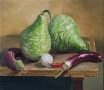 /豐水梨   玫瑰茶香   古早味的瓠瓜記憶_賴英澤 繪_The Memory of Old Fashion Bottle Gourd_oil painting painted by Lai Ying-Tse   黃金奇異果_賴英澤 繪 Golden Kiwi Fruit oil painting painted by Lai Ying-Tse